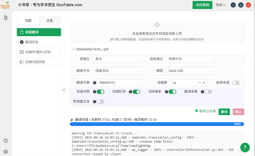 免费、完美排版、数据本地保存的PDF翻译工具